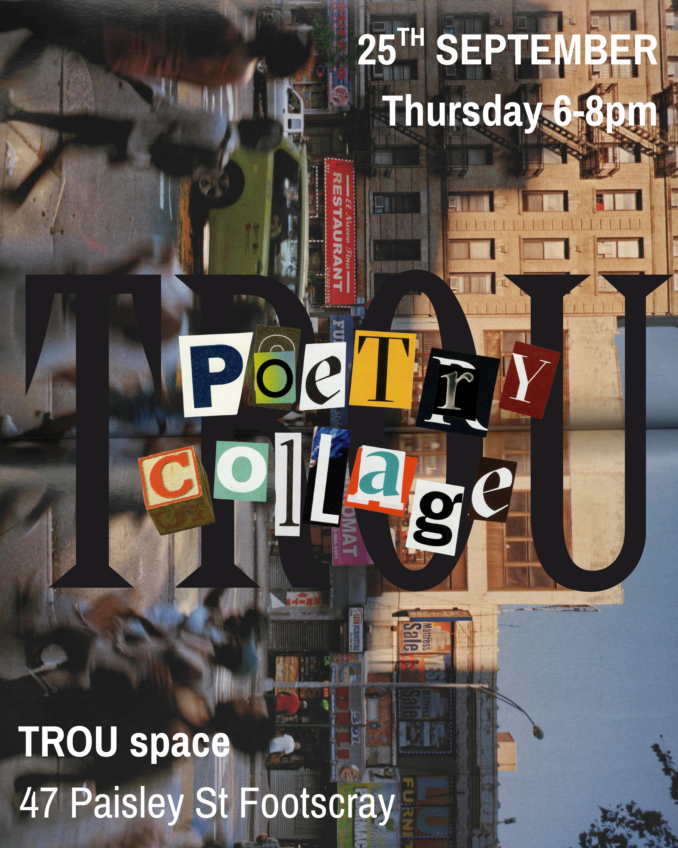 #PoetryCollage #FoundPoetry #TheRestOfUs #TROUSpace #CreativeWorkshop #FootscrayEvents #ZineCulture #CutAndPastePoetry #hcmeagi